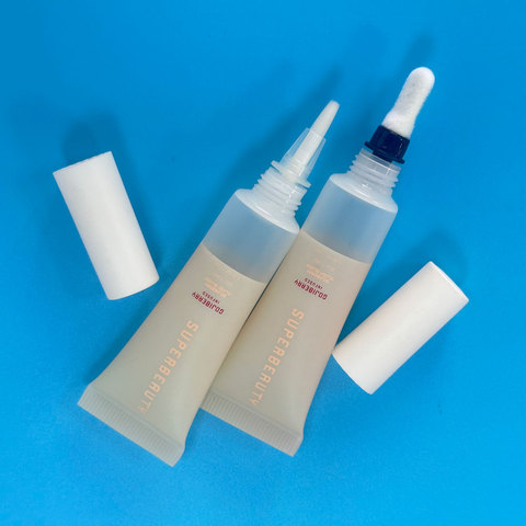 Tubos de brillo de labios de 10 ~ 25ml, aplicador grande, crema cosmética para ojos, tubo suave con aplicador de masajeador de aleación de zinc